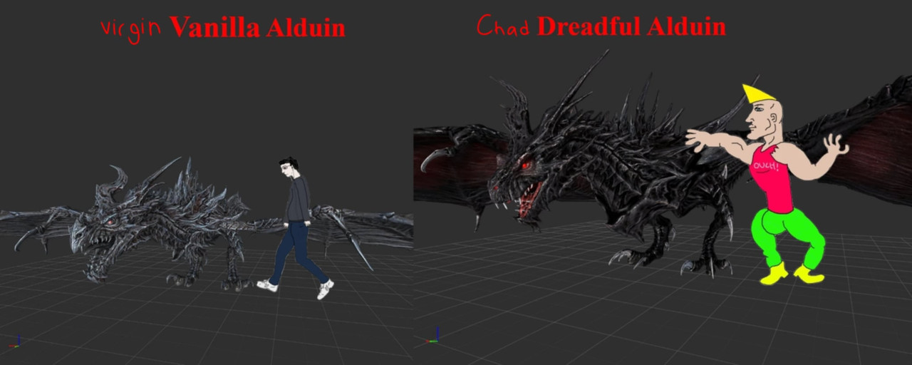 Downloaded this because after turning my game into an HD paradise, I completely forgot about the dragons. Alduin should be intimidating now. Thank you for this.